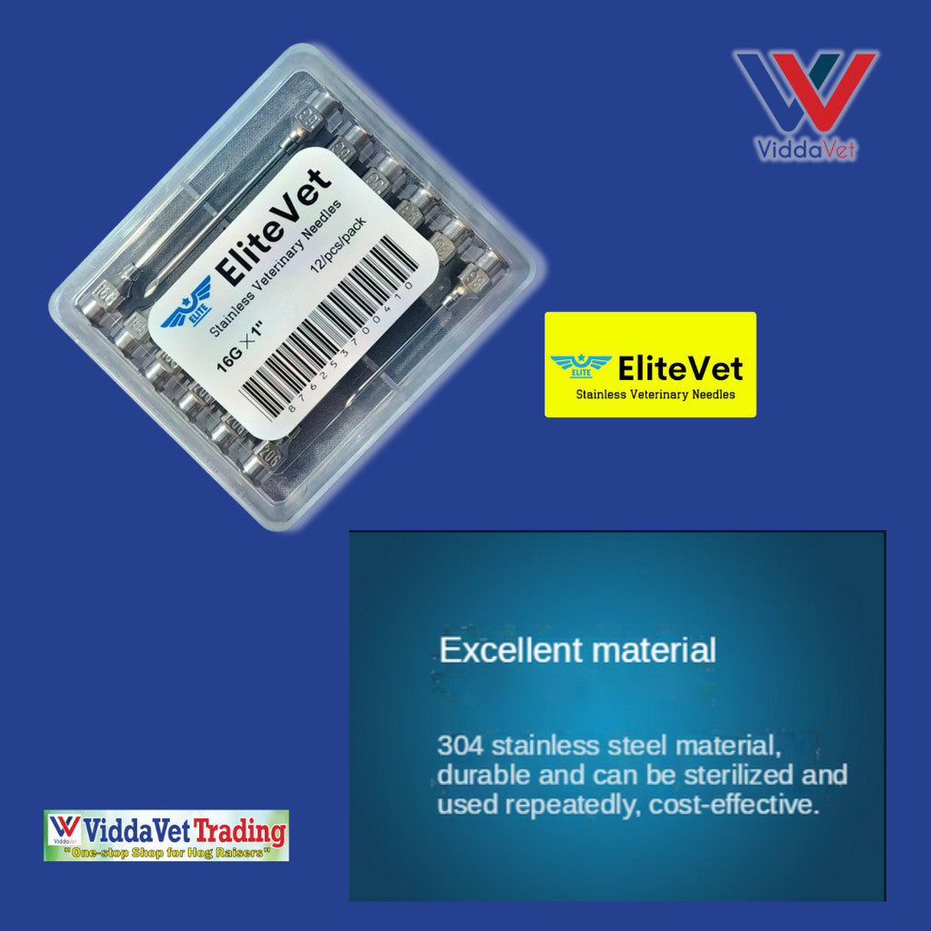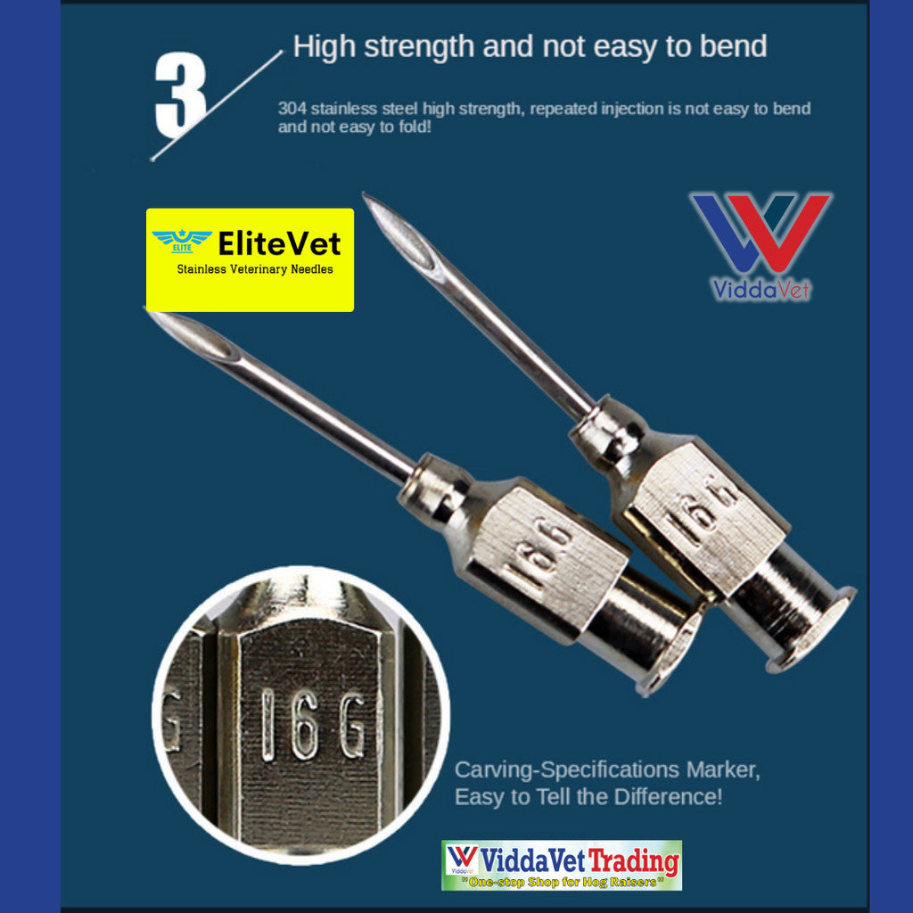 🐖 EliteVet Stainless Steel Hypodermic Needles 16G x 1 inch – Premium Veterinary Grade for Swine Injections
