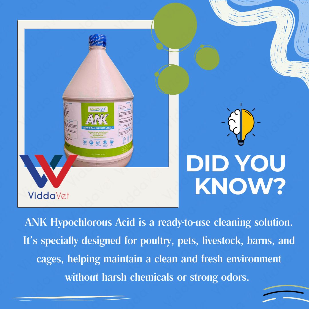 #AnimalCare #PoultryFarming #LivestockHealth #PetCare #Disinfectant #FarmSupplies #VeterinarySupplies #HypochlorousAcid #ANK #Viddavet #BiosecuritySolutions #FarmCleaning #PetSafety #LivestockSupplies #PoultryHealth