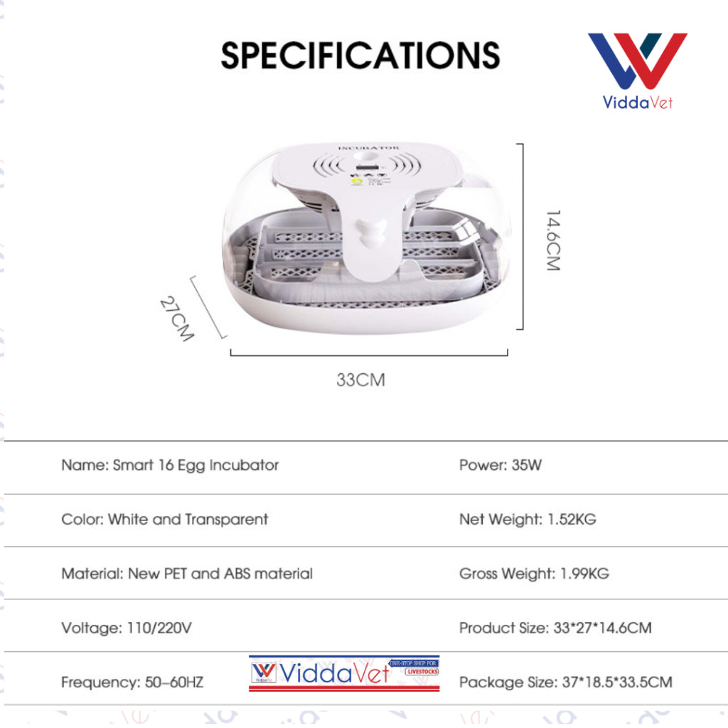 - ✔ 16 Egg Capacity: Perfect size for small to medium-scale breeding operations