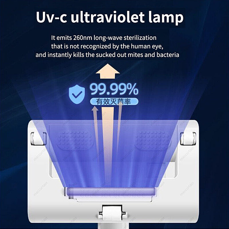 Eliminate dust mites, allergens, and bacteria from your mattresses, pillows, and upholstery with this powerful UV-C sanitizing vacuum cleaner designed for superior home hygiene.