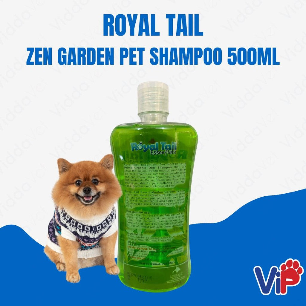 1 bottle (500ml) of Royal Tail Zen Garden Dog Shampoo with printed usage instructions