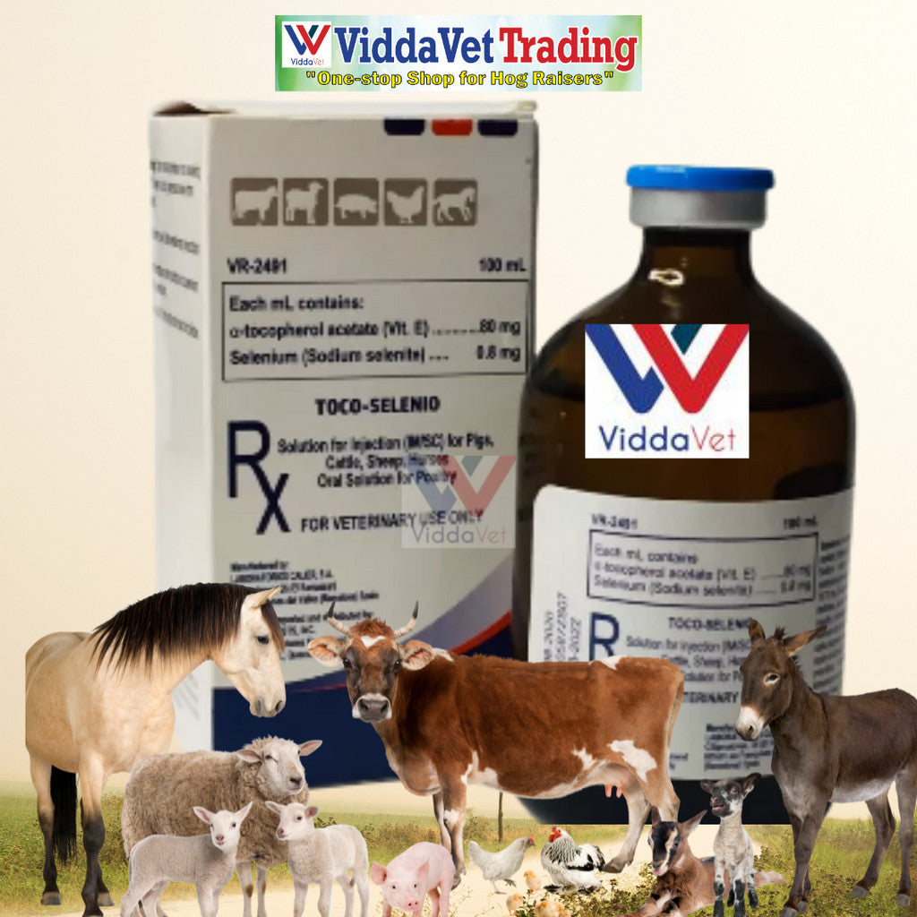 Toco Selenio 100ml is a specialized veterinary solution designed to prevent and treat pathologies caused by vitamin E and selenium deficiencies in animals. This essential supplement supports optimal health and performance in your livestock and companion animals.