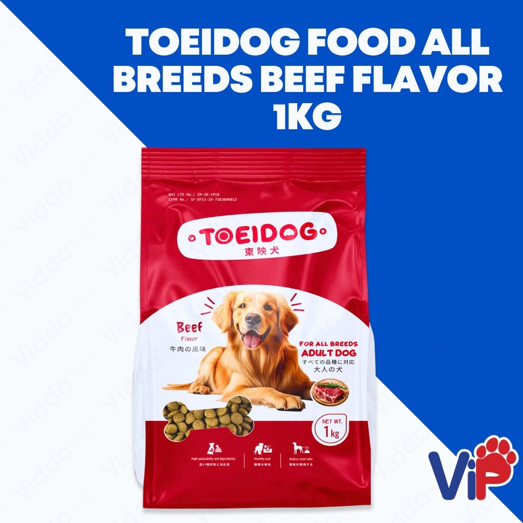 1 pack of ToeiDog Food All Breeds Beef Flavor (1kg) with feeding guidelines