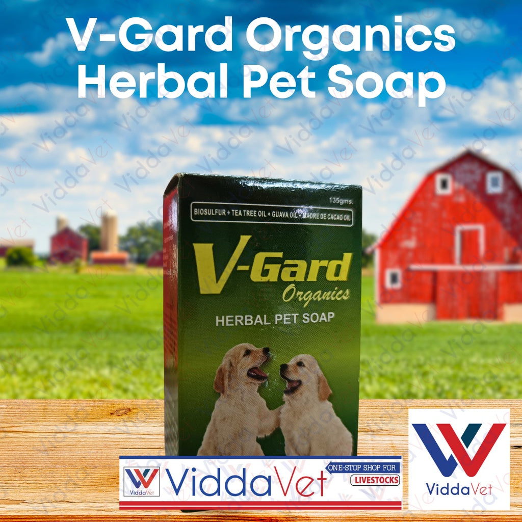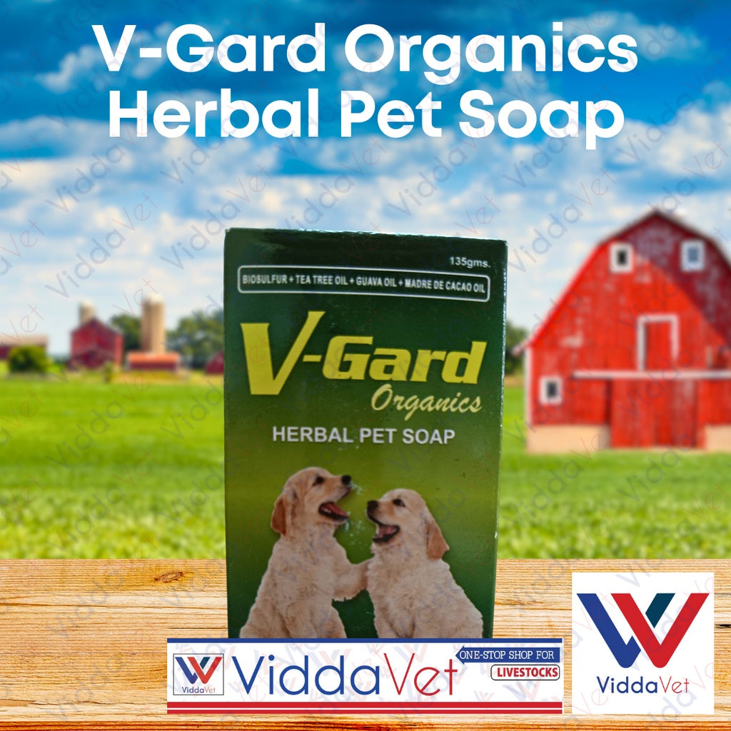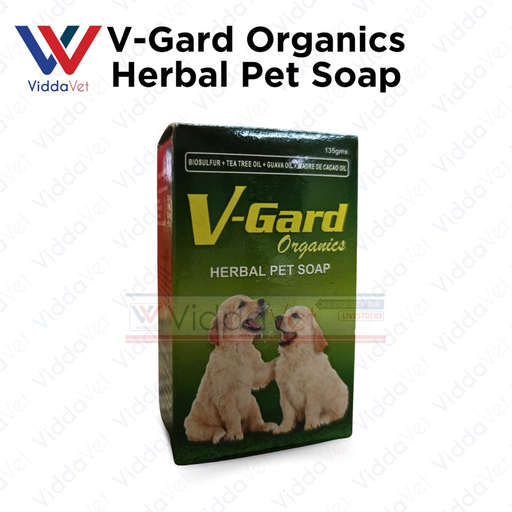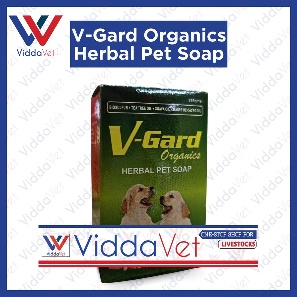 1 bar (135g) of V-Guard Organics Herbal Pet Soap with printed usage instructions