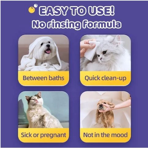Keep your furry friends clean and fresh without the hassle of traditional bathing! Perfect for busy pet owners, elderly pets, or situations where water isn't available.