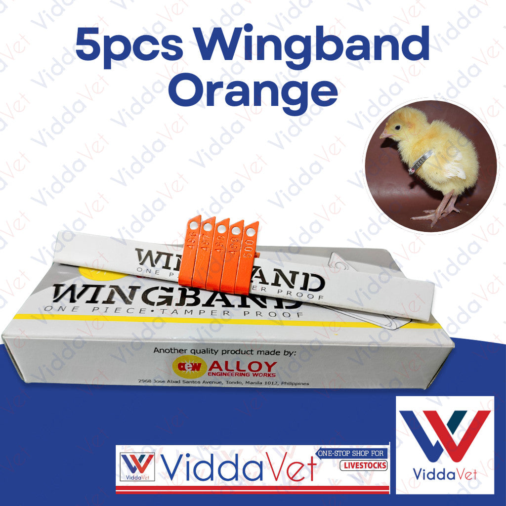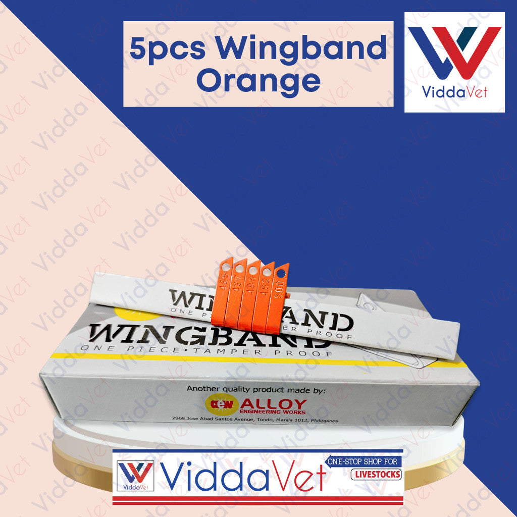5 orange wing bands + application instructions