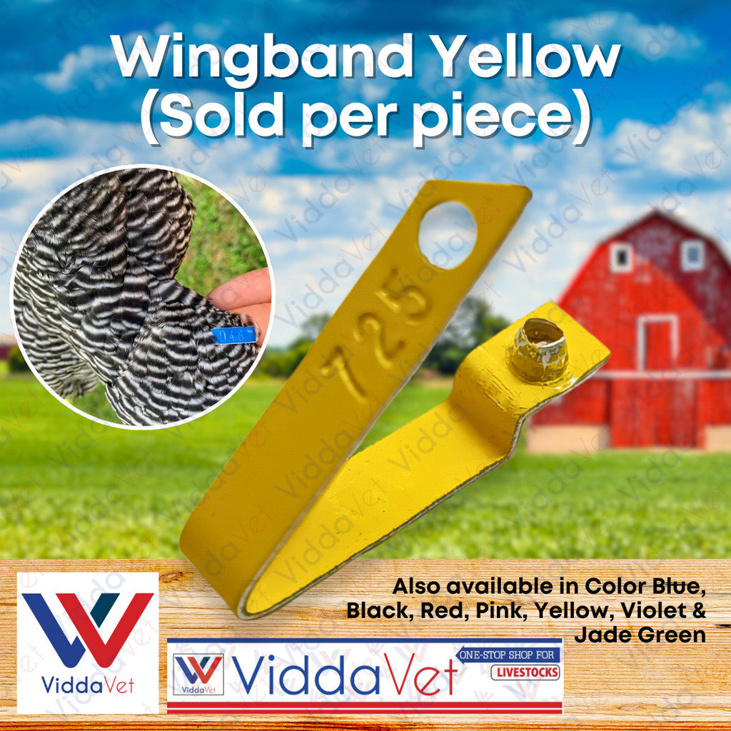๐ Viddavet Wing Band Yellow 1pc โ Poultry Identification & Management